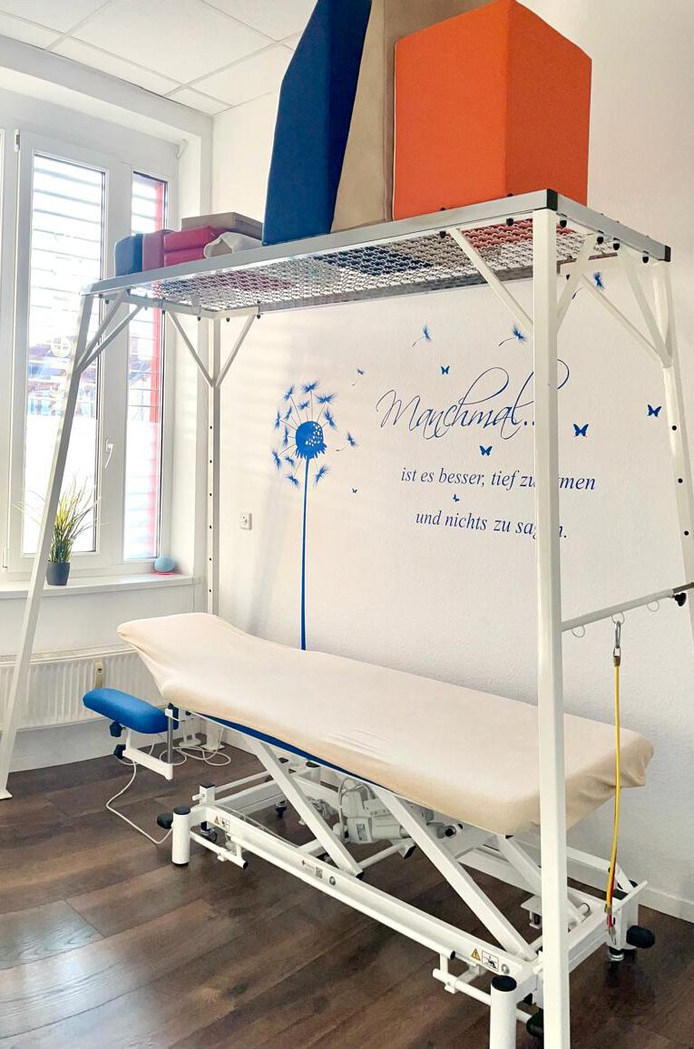 Alle Behandlungsräume sind großzügig und in sich geschlossen, sodass Sie in einer ruhigen, entspannten Atmosphäre behandelt werden. Zur Ausstattung gehören moderne medizinische Therapiegeräte wie Ultraschall, Elektrotherapie, Schlingentisch und Fango.